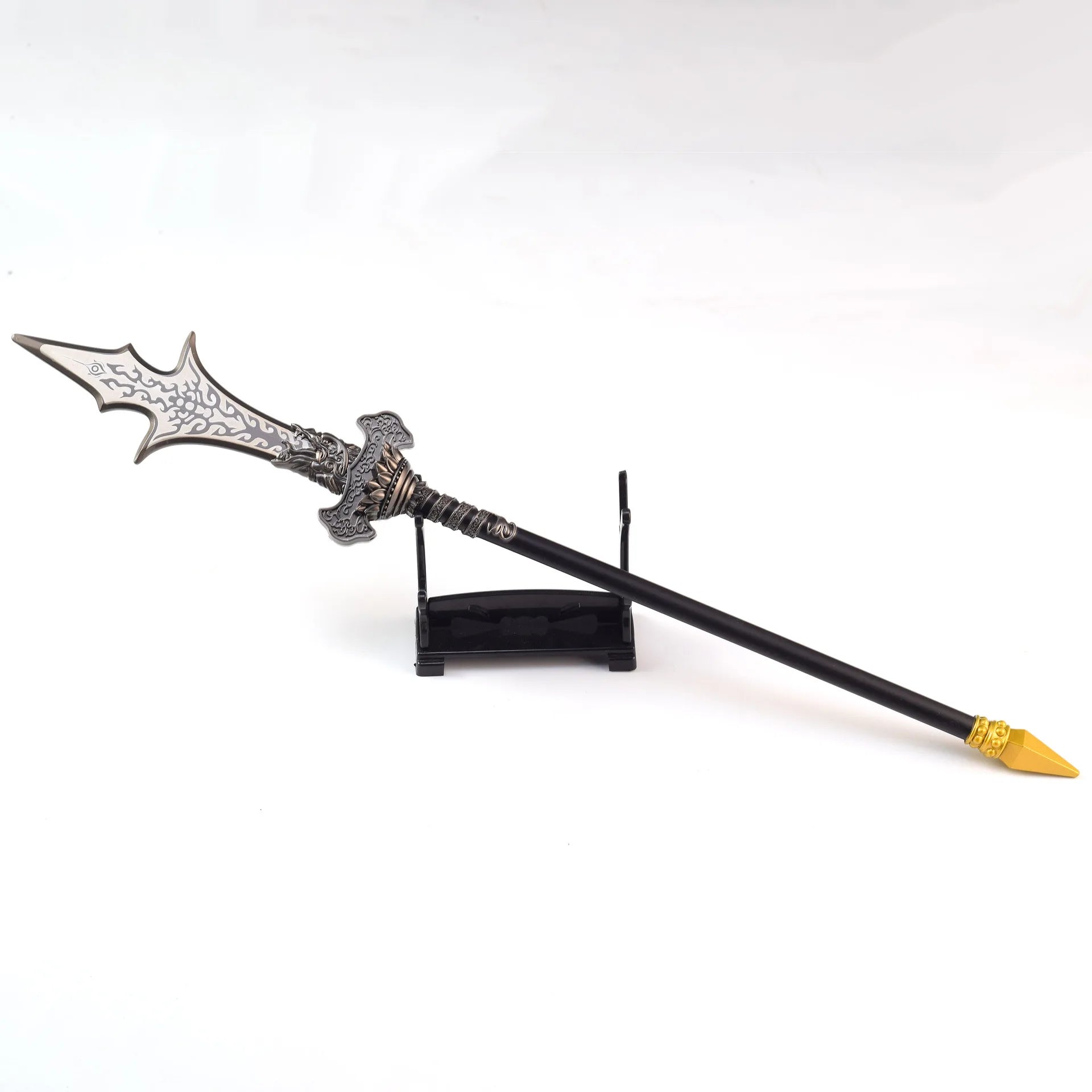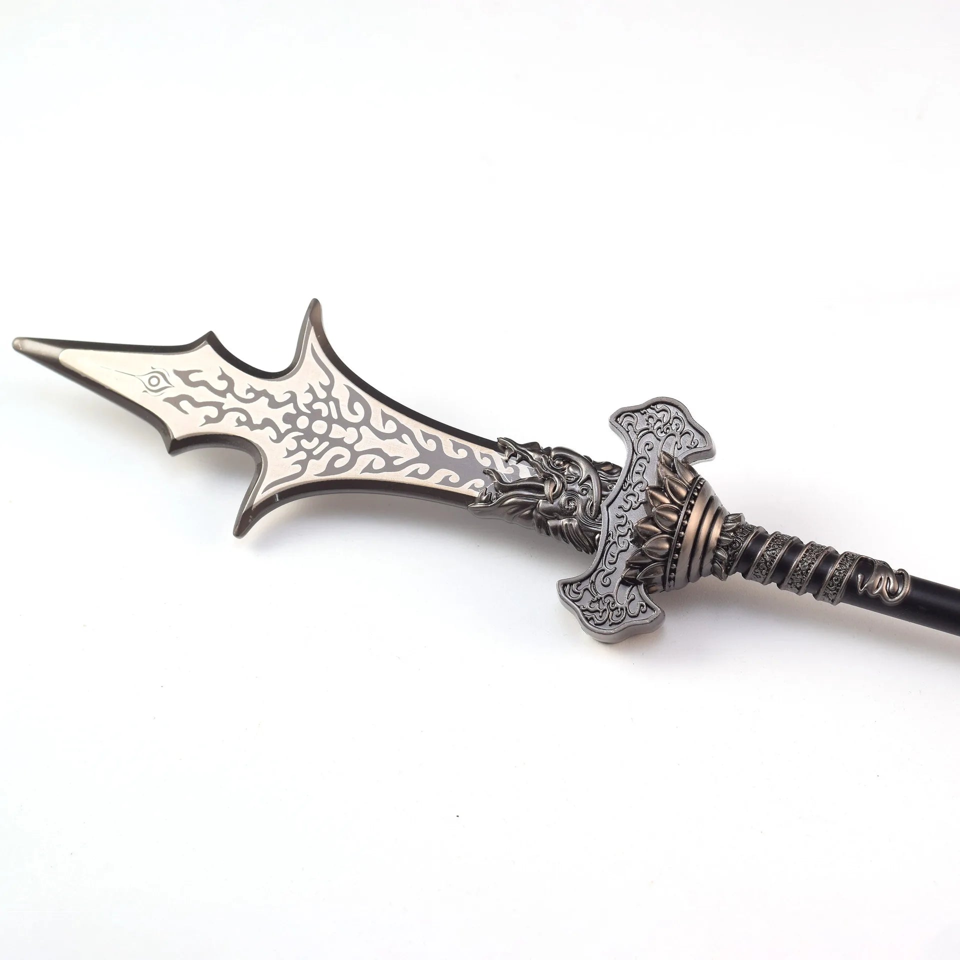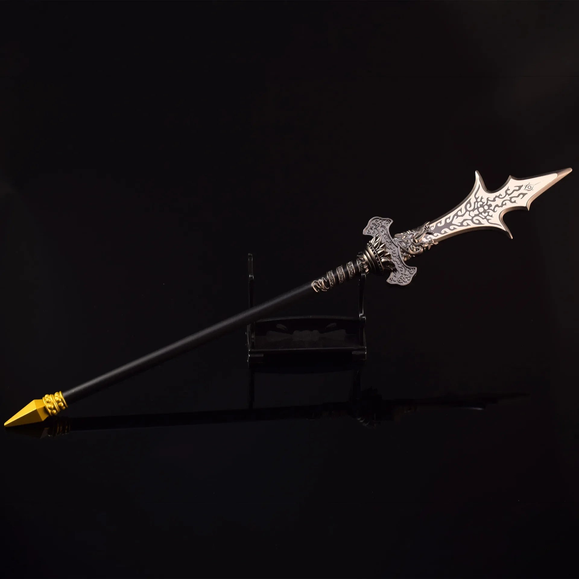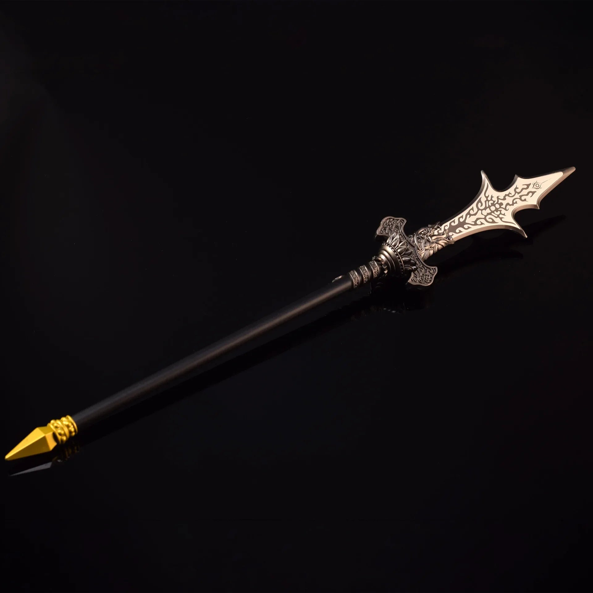 Forged from high-quality metal, this Black Myth: Wukong replica weapon features intricate 3D engravings, a stunning double-bladed spearhead, and an ornate dragon-inspired hilt. Measuring 25 cm, this mini replica is a perfect collector's piece, designed for both display and appreciation of legendary craftsmanship.