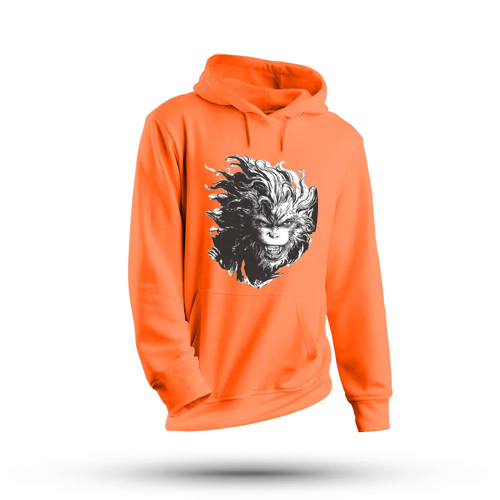 The vivid orange color makes a statement, while the high-contrast Sun Wukong print adds a dynamic, battle-ready feel. Whether you're at a gaming event, out with friends, or just relaxing, this hoodie ensures you carry the unstoppable energy of Wukong wherever you go.