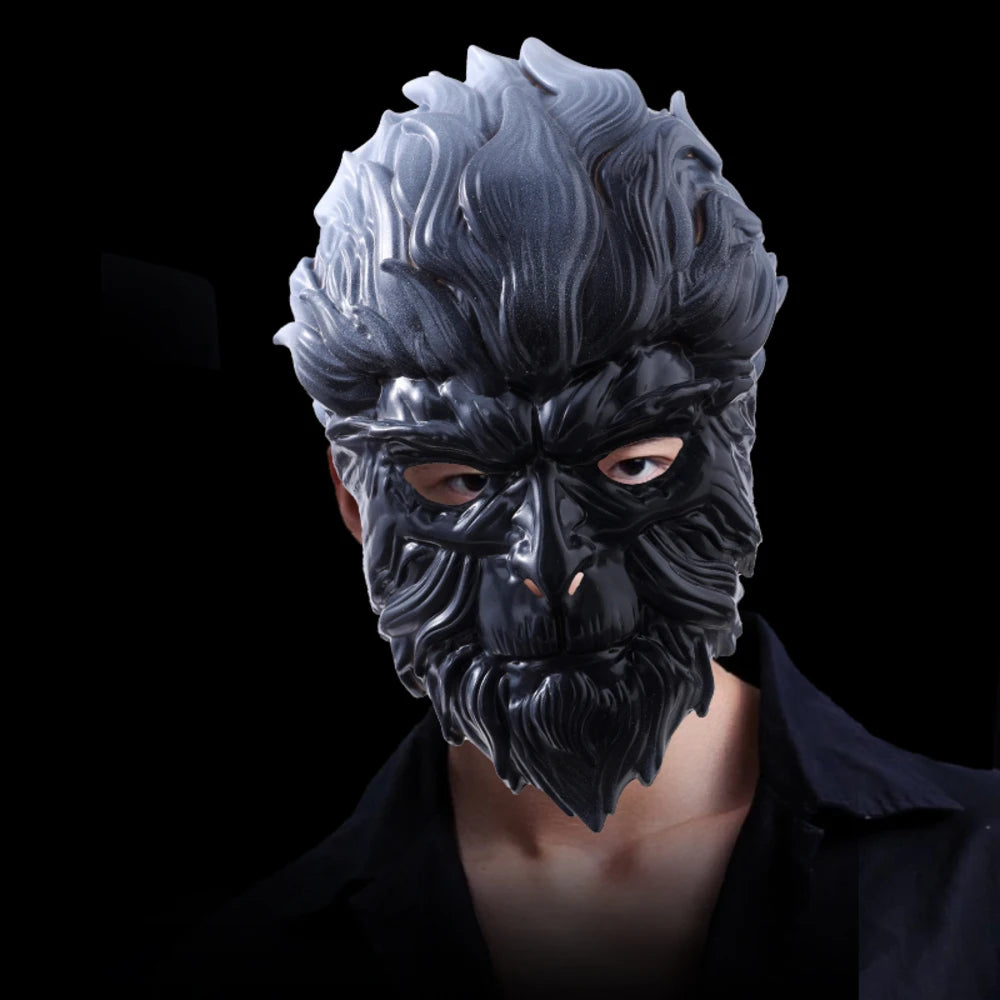 Crafted from durable and lightweight materials, this Sun Wukong mask features detailed sculpting, sharp facial contours, and a fierce yet regal expression. The black metallic finish gives it an imposing and battle-worn aesthetic, ideal for display or wear.