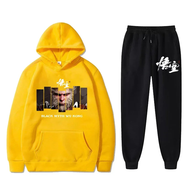 This Black Myth: Wukong hoodie and pants set is not just for gaming – it's versatile enough for casual outings as well. The bright yellow hoodie adds a pop of color, while the black pants bring balance, making it easy to pair with other wardrobe items. Whether you're attending a casual meetup or preparing for an intense gaming session, this set offers both style and function.