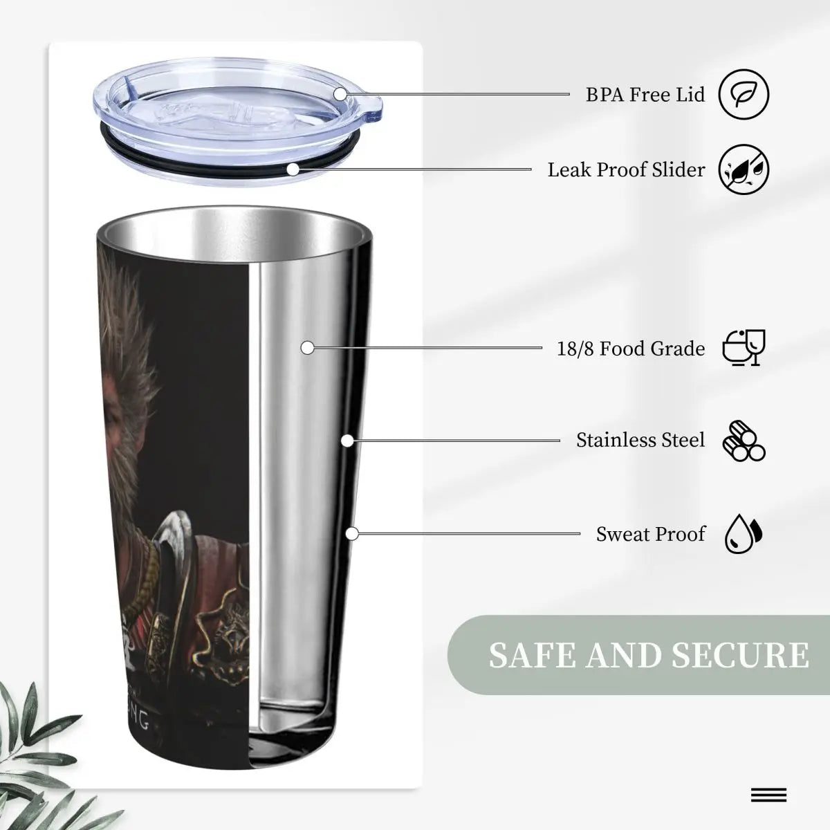 Take your favorite drinks on the go with this striking Black Myth: Wukong Tumbler. Featuring a powerful and detailed image of Wukong, the Monkey King, this tumbler embodies the strength and determination of the legendary hero. The dark, intense design highlights Wukong’s formidable presence, making it a must-have for fans who want to stay connected to the game’s epic world in their everyday lives.