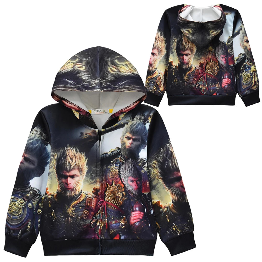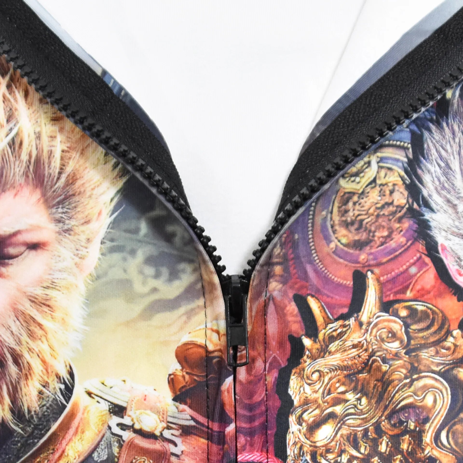 This official Black Myth : Wukong hoodie showcases a striking design featuring the legendary Monkey King. With detailed artwork of Wukong's fierce expression and intricate armor, this hoodie is a true piece of art for fans of the game. The design captures the essence of Wukong's strength, charisma, and epic presence, making it a standout item in any wardrobe.