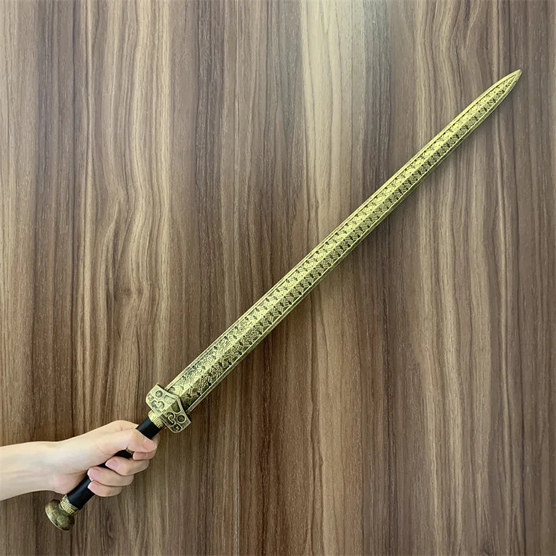 Featuring traditional engravings along the blade and a bold, angular guard, this replica perfectly mirrors the aesthetics of the Goujian sword—a weapon associated with kings, heroes, and celestial warriors. The golden finish gives it a timeless, revered presence worthy of display or roleplay.