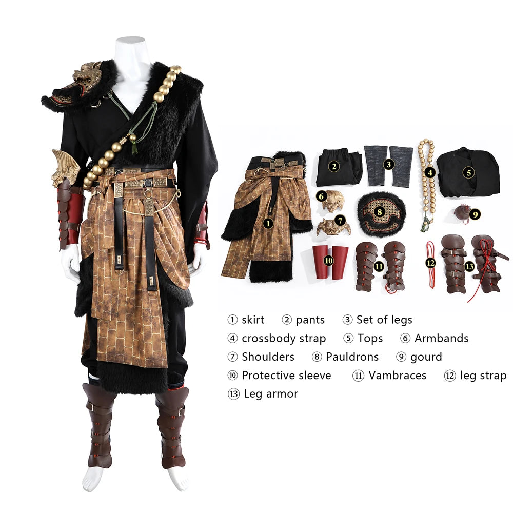 Step into the shoes of Sun Wukong, the legendary Monkey King, with this intricately designed cosplay. Inspired by the fierce warrior from Journey to the West, this high-quality costume captures the essence of the character with its detailed armor, warrior accessories, and authentic appearance. From the fearsome dragon shoulder armor to the traditional woven robe, every detail has been carefully crafted to ensure you look like the mighty Wukong himself.