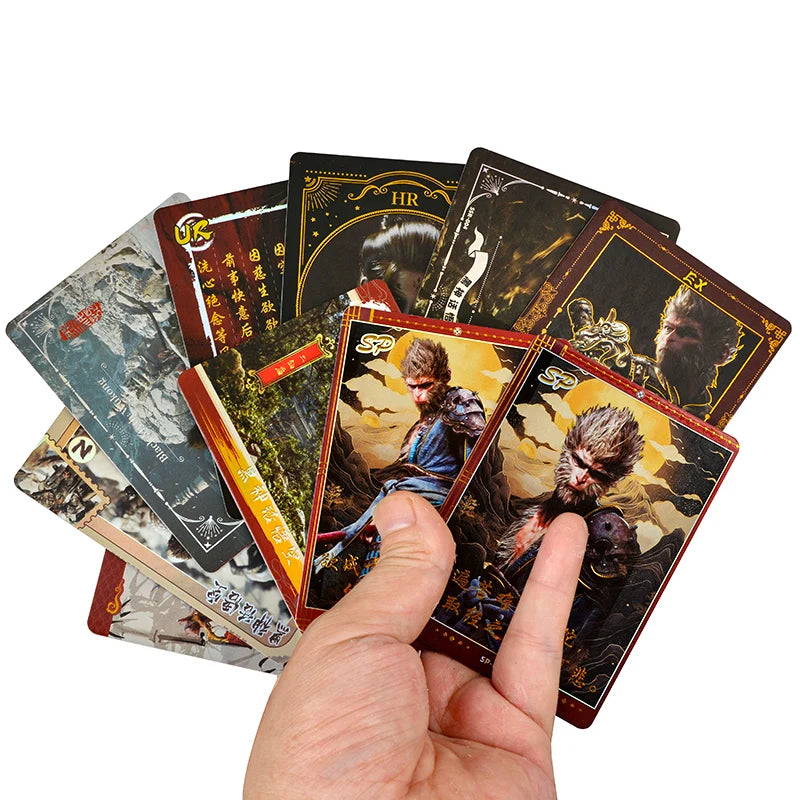 Crafted with stunning high-definition printing, these Black Myth: Wukong cards highlight intricate details, vibrant colors, and mythological creatures from the game. Encased in a luxurious gold-accented box, this collection delivers durability and artistic excellence, making it ideal for display or trading.