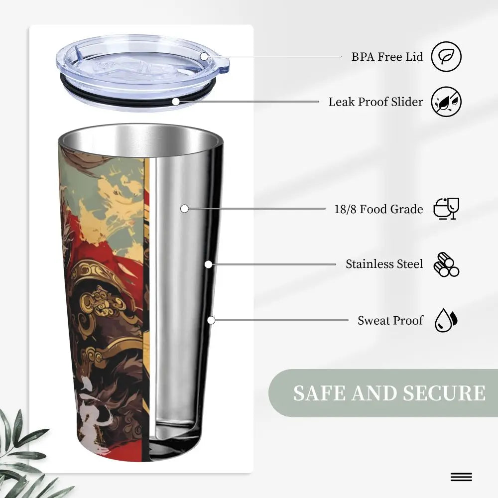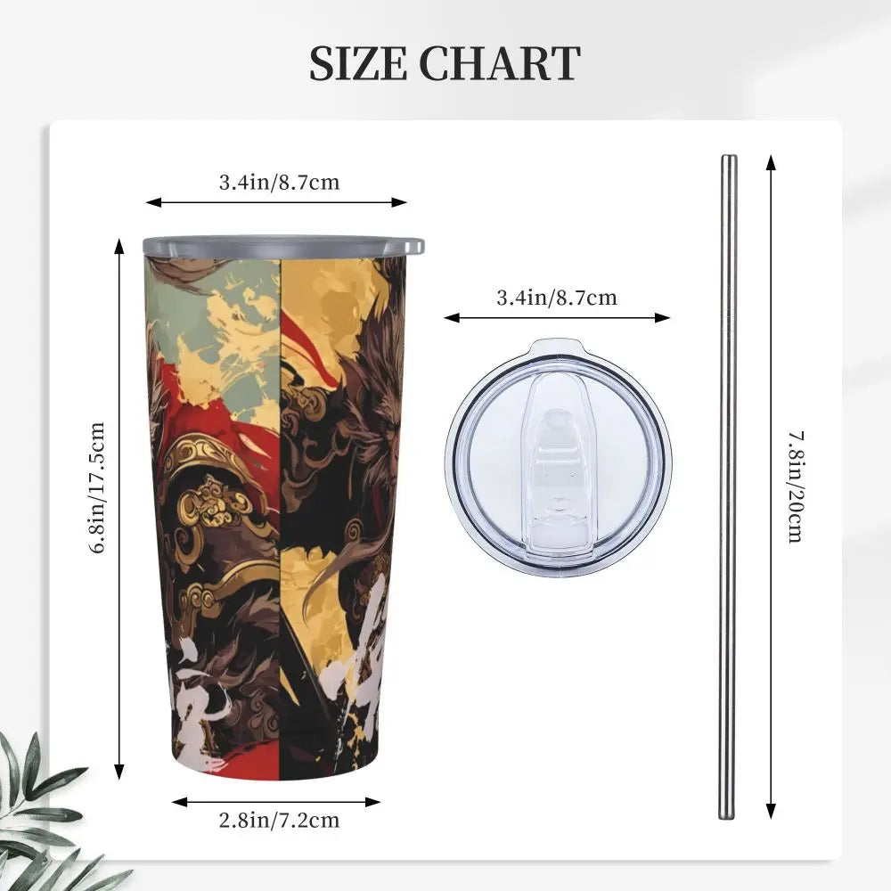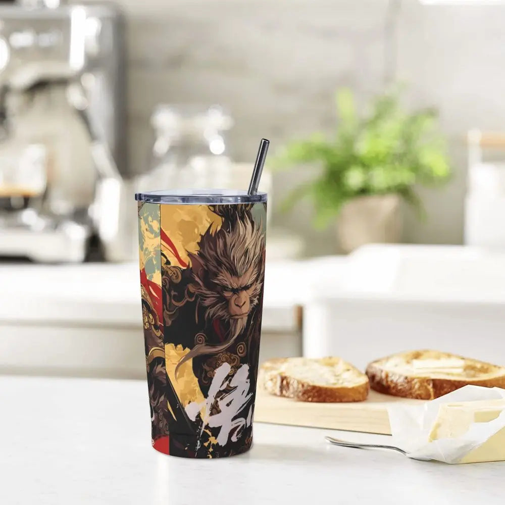 Introducing the ultimate drinkware for fans of Black Myth: Wukong—the Wukong Tumbler. Featuring a vivid, dynamic design that captures the essence of Wukong in all his legendary glory, this tumbler is perfect for those who want to carry a piece of the myth with them wherever they go. The striking artwork, rich in detail and color, makes this tumbler a standout addition to any collection, whether you're a hardcore gamer or simply appreciate fine, artistic designs.