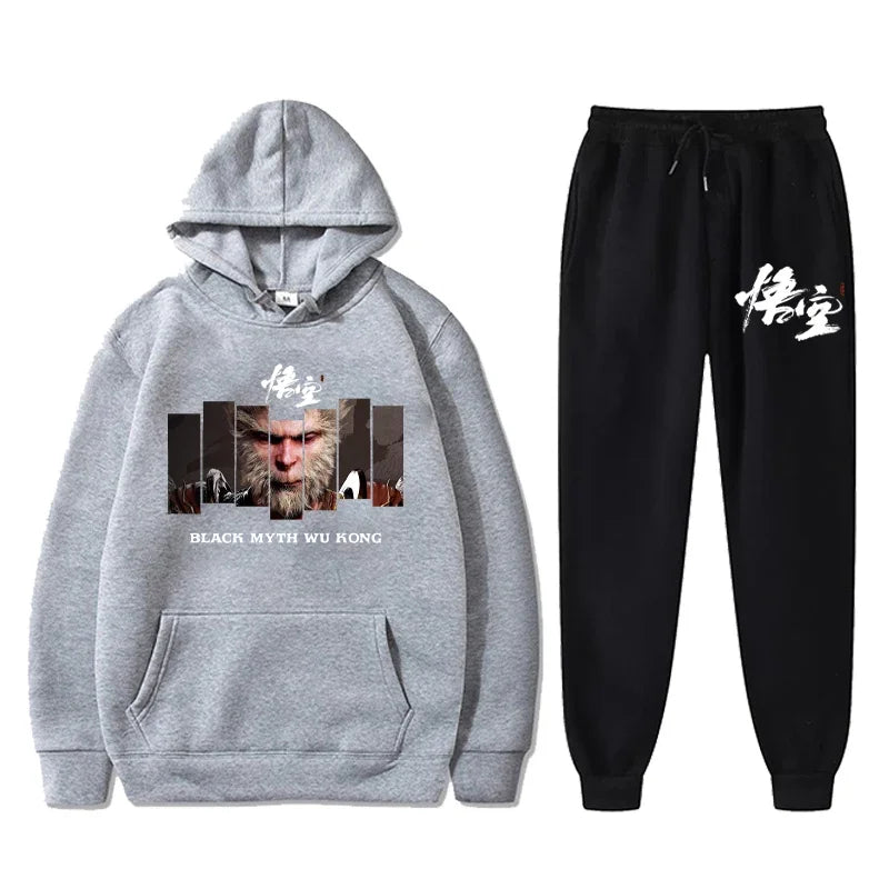 Black Myth: Wukong Gray Hoodie and Black Pants Set