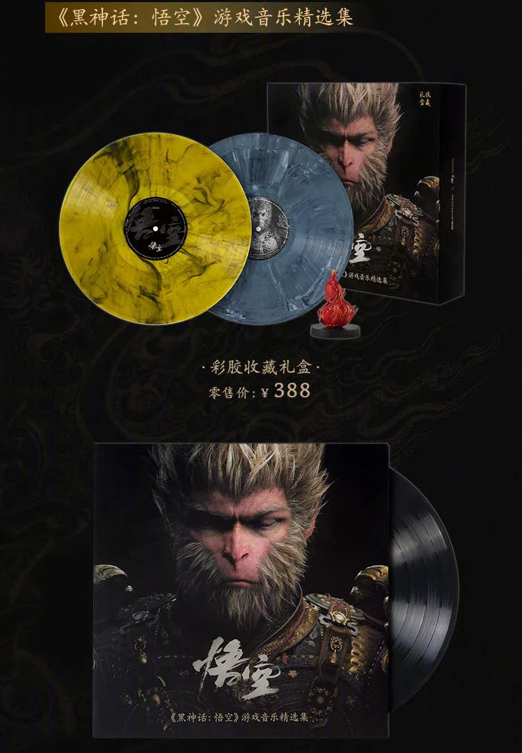 Encased in a premium box with gold-stamped Chinese characters and a dynamic portrait of the Monkey King, this set is designed to be both displayed and preserved. It’s a museum-worthy piece for fans of epic gaming, music collectors, or admirers of Chinese mythology and folklore.