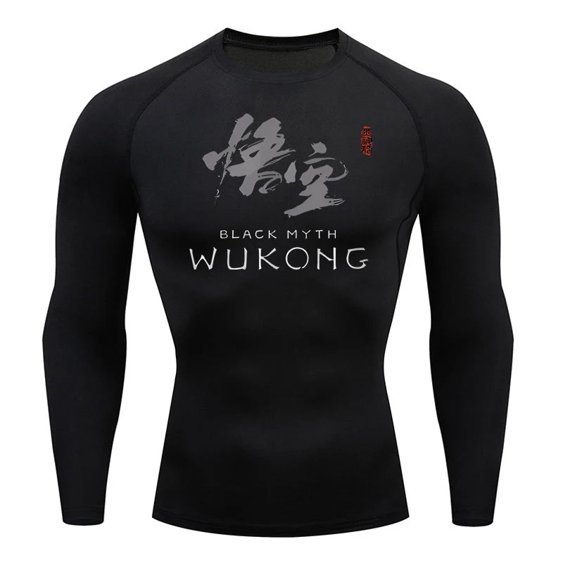 Show off your love for Black Myth : Wukong with this stylish black long-sleeve compression t-shirt. Featuring bold graphics inspired by the game, it’s the perfect blend of performance and fandom. Whether you're training or wearing it casually, this shirt lets you represent the epic adventures of Wukong.