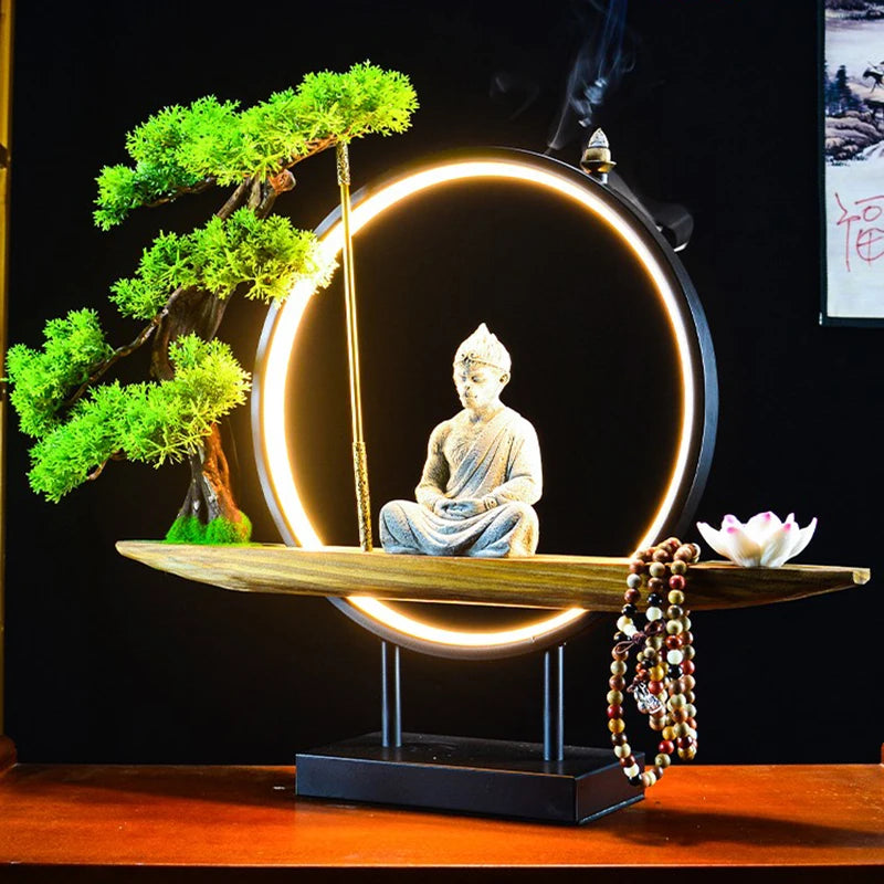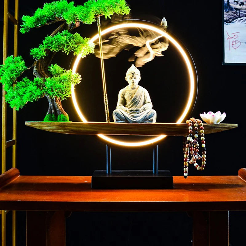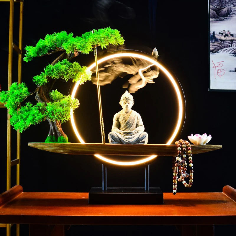 This incense burner is more than just a decorative piece; it's a functional work of art. The Monkey King statue, surrounded by an illuminated ring and a bonsai tree, combines natural and spiritual elements. The incense smoke flows seamlessly from the top, creating a captivating visual effect while filling your space with soothing aromas. Crafted from premium materials, this incense burner ensures durability and elegance in any setting.