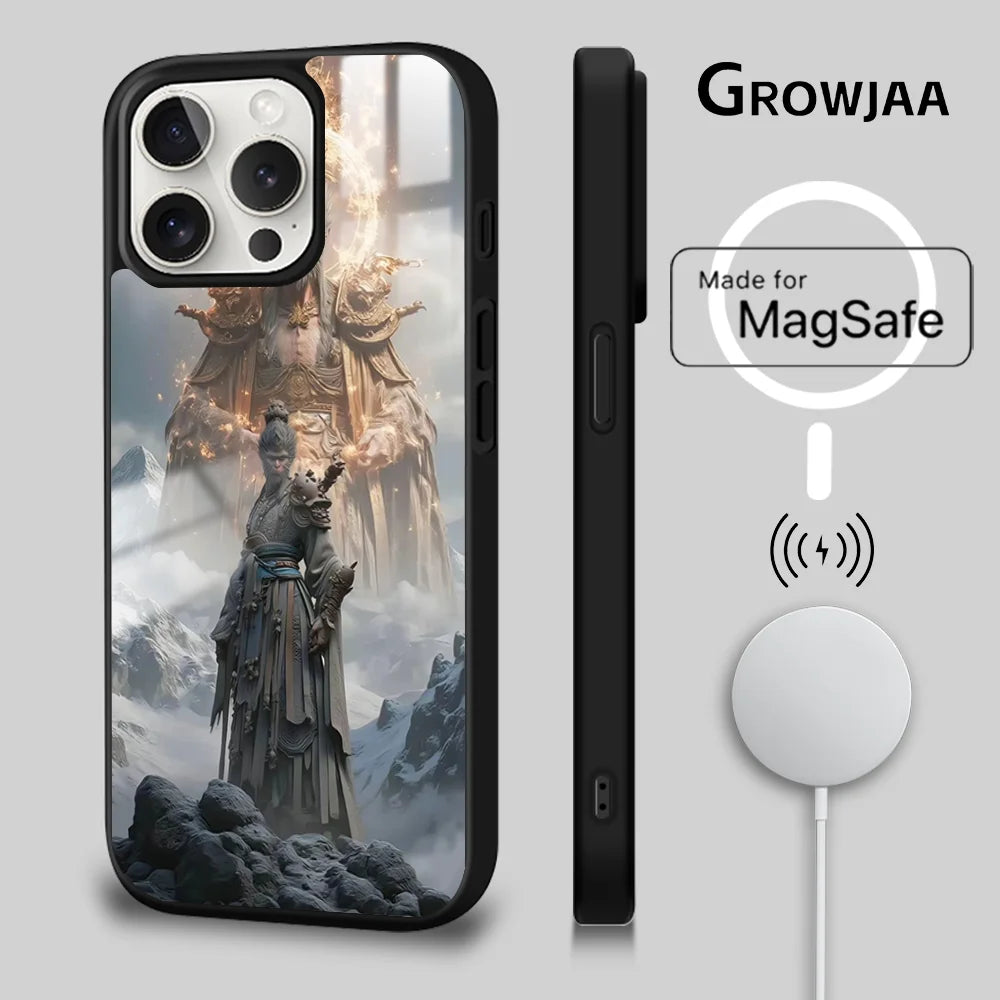 Capture the awe-inspiring power of Black Myth: Wukong with this incredible iPhone case. Featuring a divine warrior and an epic battle backdrop, this case showcases the mystical essence of the game. The image depicts the mighty hero with towering gods in the background, exuding unmatched strength and grace. The sleek black frame and high-quality design ensure your iPhone is as secure as it is stylish.