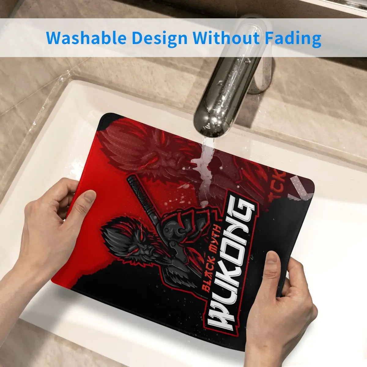 Add a dynamic edge to your gaming setup with this striking Black Myth: Wukong mouse pad, featuring an intense red and black design that captures the fierce energy of Sun Wukong. The stylized graphic of the legendary Monkey King in his battle-ready pose brings a powerful visual punch, perfect for gamers who want their gear to reflect their passion for this epic action RPG. This mouse pad isn't just an accessory; it’s a statement piece for any dedicated gamer.