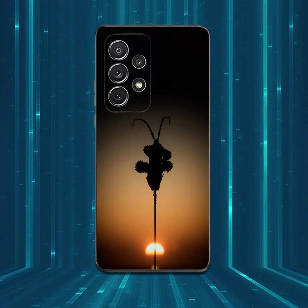 This unique Samsung case features Sun Wukong balanced high on his staff, silhouetted against a setting sun. The scene captures a moment of calm before chaos, serenity before battle—perfect for fans of Black Myth: Wukong who appreciate the symbolism behind the legend.