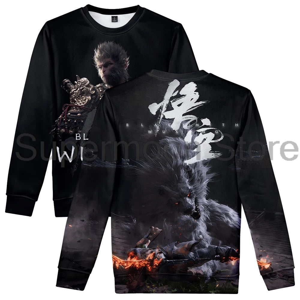 Made from soft, breathable fabric, this sweatshirt is designed for both comfort and durability. Whether you're playing your favorite games or going out with friends, the bold graphics of Wukong facing the wolf spirit will make you stand out, while the high-quality fabric ensures long-lasting wear.