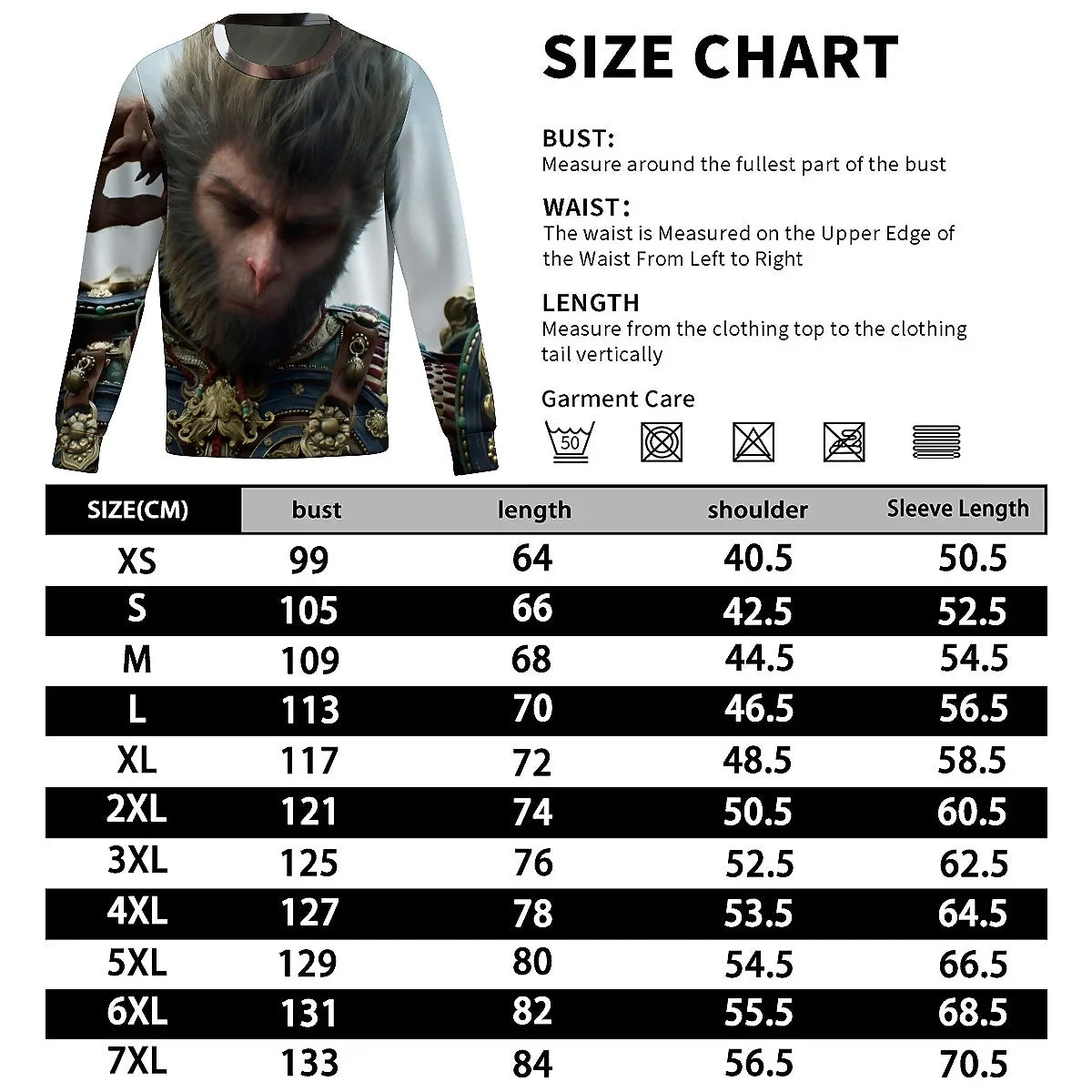 Whether you're gearing up for a gaming marathon or just enjoying a day out, this sweatshirt is perfect for all occasions. The bold Wukong portrait makes a statement, while the comfortable fit ensures you stay relaxed and stylish. This Black Myth: Wukong sweatshirt is the perfect addition to any fan's wardrobe.