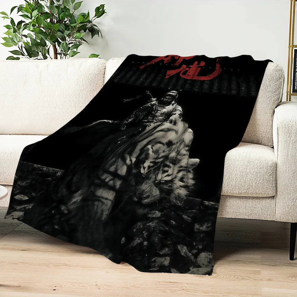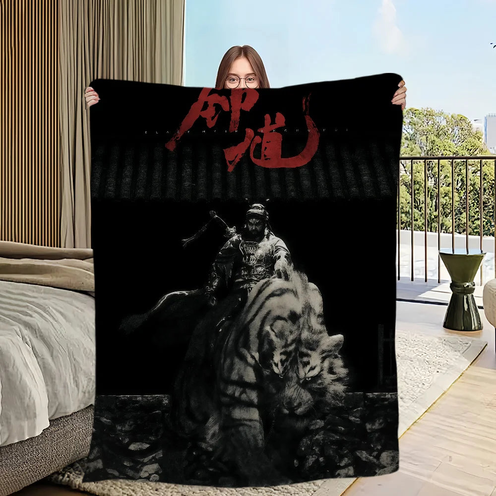 The blanket features a striking monochrome illustration of Zhong Kui, the Demon Vanquisher, mounted on a fierce tiger. This powerful design is directly inspired by his appearance in Black Myth: Wukong, making it a unique collector’s piece for dedicated fans.