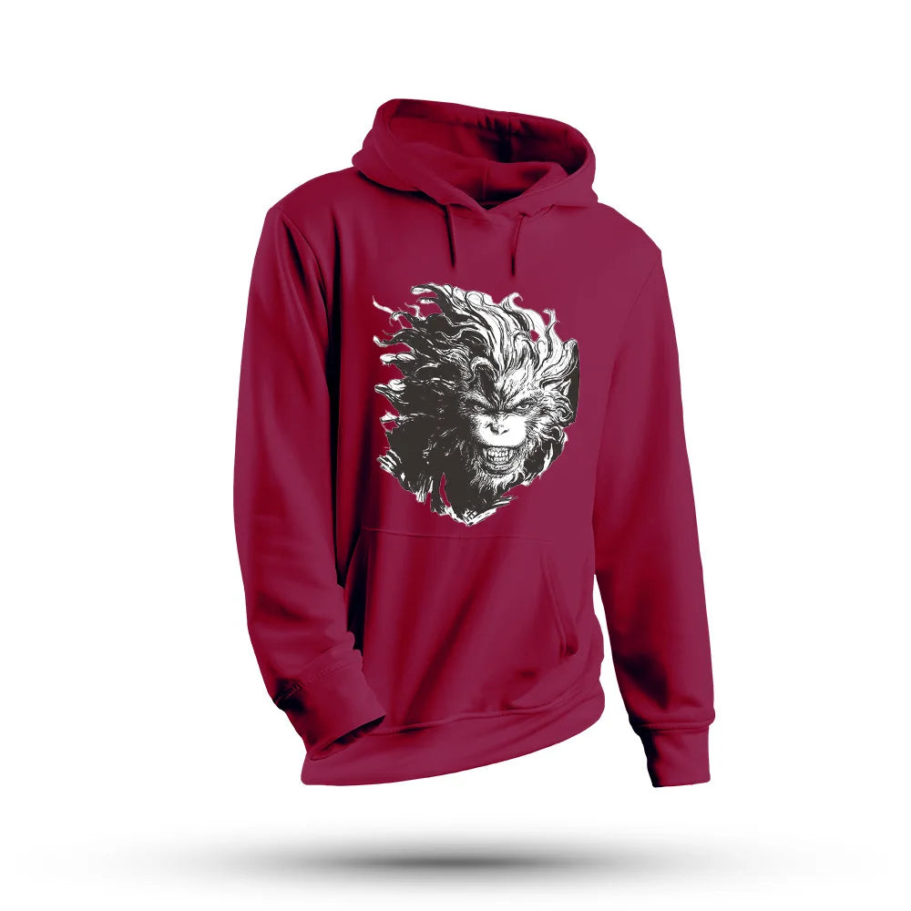 Step into the world of Black Myth: Wukong with this Fierce Wukong Burgundy Hoodie. Designed for fans who embrace the spirit of the legendary Monkey King, this hoodie features an eye-catching black and white Wukong design, set against a deep burgundy background, offering a bold and sophisticated look.