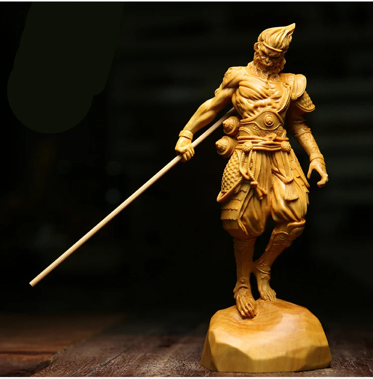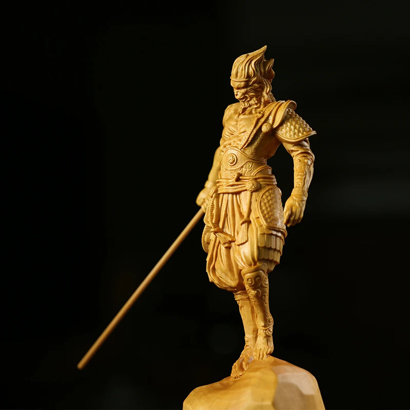 The Hand-Carved Wooden Black Myth Sun Wukong Figure is not just a decorative piece; it is a celebration of cultural heritage, artistry, and luxury. Sun Wukong, known for his intelligence, strength, and rebellious spirit, is a beloved character in Chinese folklore and a central figure in "Black Myth: Wukong." This figure embodies these attributes, making it an ideal addition for collectors and enthusiasts of the game. Whether displayed on a shelf, mantel, or desk, it serves as a constant reminder of the rich stories and epic battles from the game, now with an added touch of opulence.