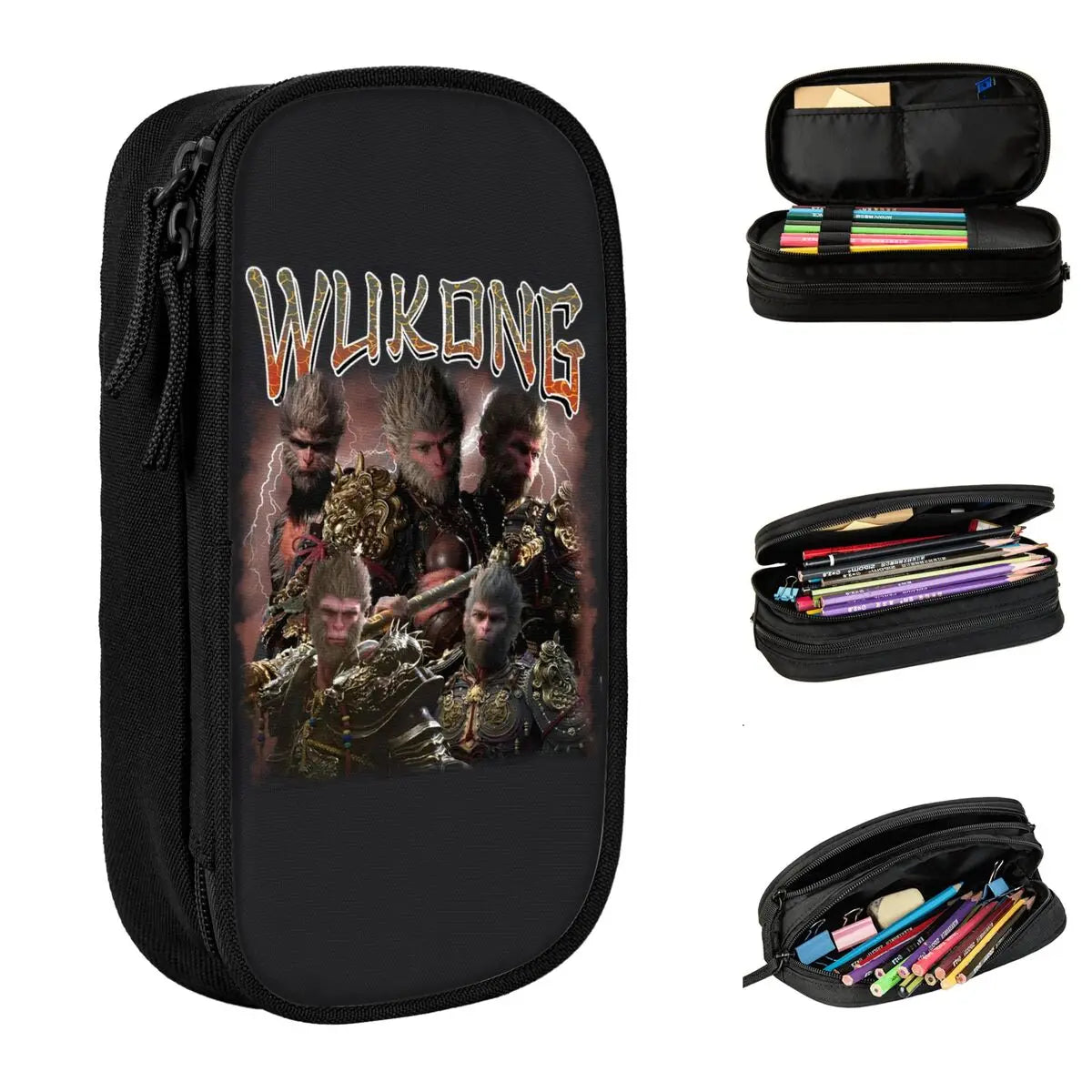Keep your school essentials neatly organized with the Black Myth: Wukong Pencil Case in black. Featuring a striking design that highlights the fierce and powerful Monkey King, this pencil case is perfect for fans of the epic game who want to bring a touch of Wukong's legendary strength and wisdom into their daily routine. The bold "Wukong" lettering, combined with vivid imagery of the Monkey King in various battle poses, makes this pencil case a standout accessory for any student.