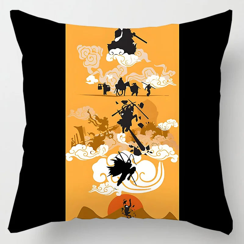 Embrace the legendary tale of Sun Wukong and his companions with the Black Myth: Wukong Pillowcase featuring the Journey to the West design. This artistic pillowcase beautifully illustrates the iconic journey, capturing the essence of the characters and their adventures through stylized silhouettes and a warm color palette. It's a perfect addition for fans of the classic story and the game, adding a touch of mythological charm to any space.