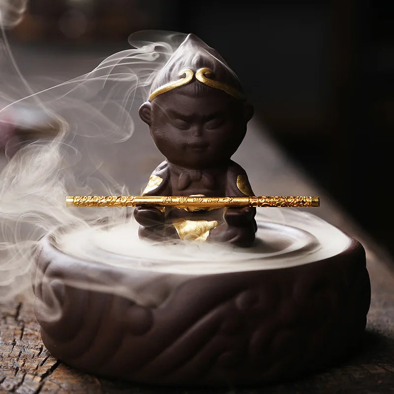 Experience tranquility with the Black Myth: Wukong Serenity Incense Burner. Inspired by the legendary Monkey King, this beautifully crafted incense burner provides the perfect centerpiece for relaxation or meditation. As the incense smoke cascades down in a calming waterfall effect, it fills the room with peaceful aromas while creating a mesmerizing visual display.