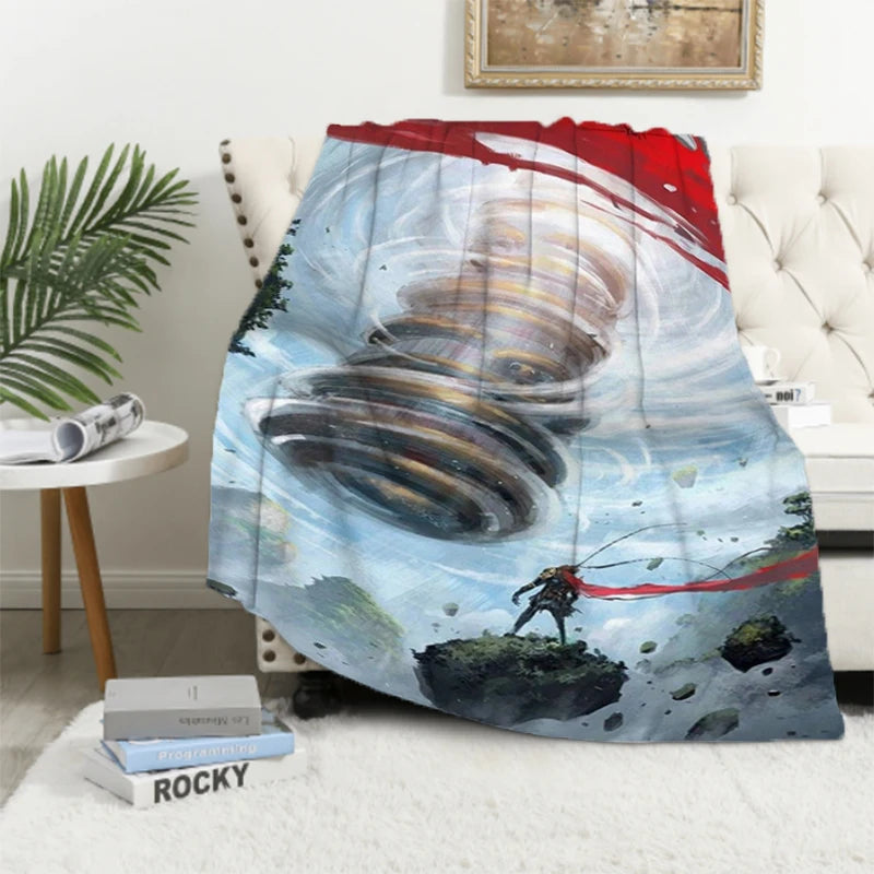 Immerse yourself in the legendary world of Black Myth: Wukong with the Storm of Legends Blanket. This blanket features an awe-inspiring design that captures a dynamic scene from the game, showcasing the Monkey King facing a towering mystical vortex. The vivid imagery is printed with high-definition clarity, making it not just a blanket, but a work of art that brings the epic adventures of Sun Wukong to life in your home.