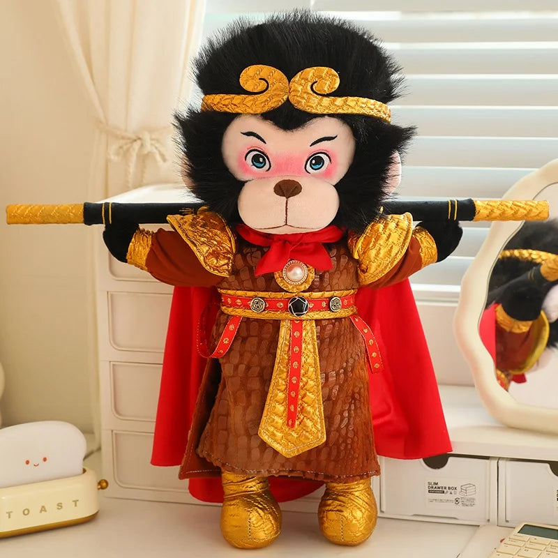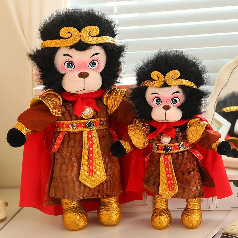 Bring the myth to life with this Sun Wukong plush inspired by Black Myth: Wukong. With vibrant red armor, a matching flowing cape, and detailed embroidered elements, this plush captures the fiery strength of the Monkey King — available in 35cm or 45cm sizes.